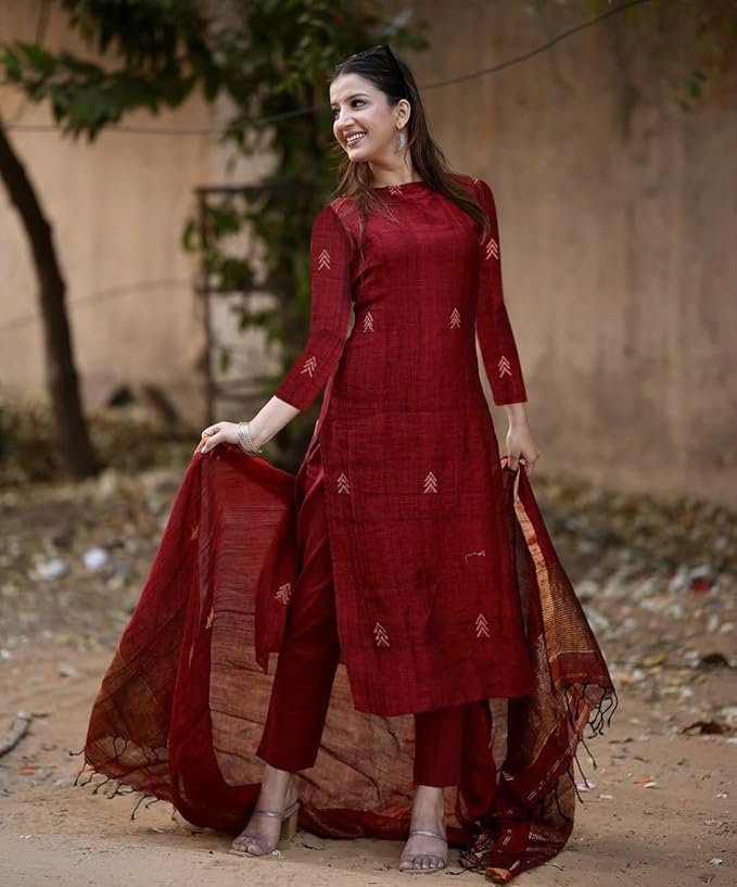 Step into timeless elegance with the Anni Designer Maroon Kurta Pant Set with Dupatta, a beautifully crafted 3-piece ethnic ensemble designed for modern women who love traditional charm.